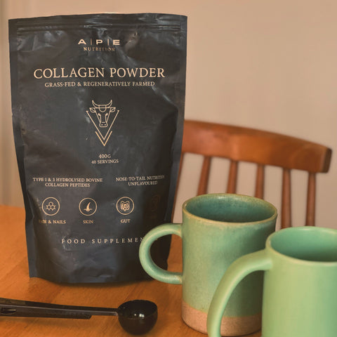 "Best quality collagen. I've noticed my hair feels stronger, thicker. I usually break out slightly before my period but since taking Ape collagen my skin is clearer. I also take it with raw milk in the evening and find my sleep quality has improved. All Ape nutrition products are the best and I won't shop anywhere else."