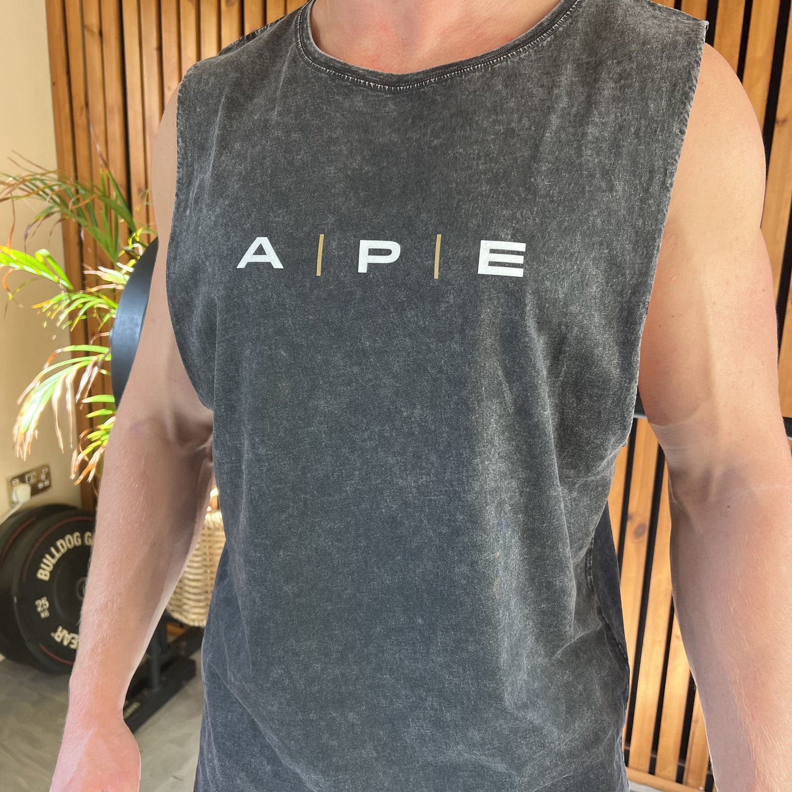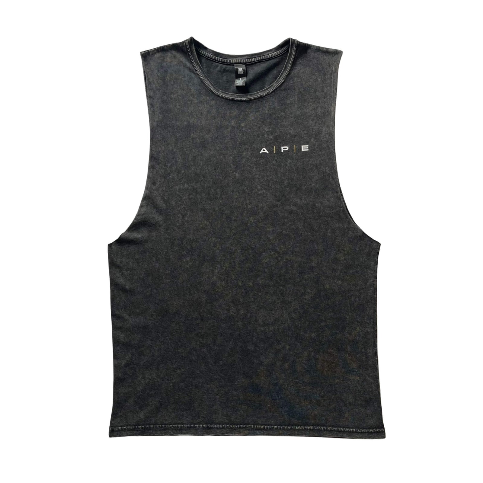 APE unisex training vests in stone black. Made from 100% combed cotton that has been ethically sourced, our vests come in size S, M, L and XL.