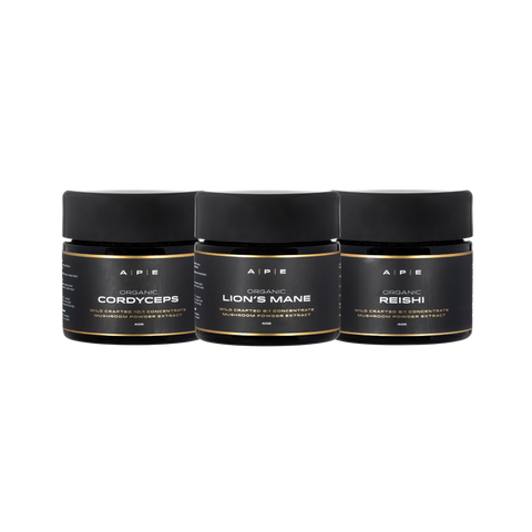 All of these mushrooms can offer tremendous benefits to health and exercise performance. Although they share a number of characteristics in terms of supporting mental and physical energy, immunity health and can aid the nervous system, research has shown that each one is a front-runner in its own unique field. Lion's Mane has been known to help support cognition by stimulating nerve cell growth and repair. Whereas Cordyceps may help support the increase of ATP (cellular energy) production and oxygen absorbtion / utilisation. Reishi can help support calming the central nervous system. All these mushrooms have high levels of bio-active compounds that support the body's immune response and helping the cells ability to eradicate pathogens and increase apoptosis (the clearing our of damaged cells).