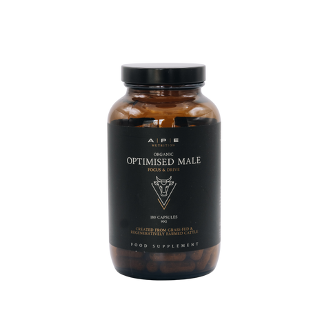 Optimised Male can provide support for key functions of masculinity. Made from 50% grass-fed beef testicles and 50% grass-fed beef liver, this product contains many unique compounds which can work in tandem to support male hormone production and sexual health. For example, the transforming growth factors within can support the production of testosterone, the primary male sex hormone, which plays a pivotal role in enhancing muscle size, strength, bone health, sex drive and sperm production. All the organs we source for our nose-to-tail line come from an organic certified farm where the cattle are 100% grass-fed and free to roam on pastures. We gently freeze dry the organs raw to maintain as many of the fragile nutrients and enzymes within them. Each jar contains 180, 500mg capsules (30 day supply).
