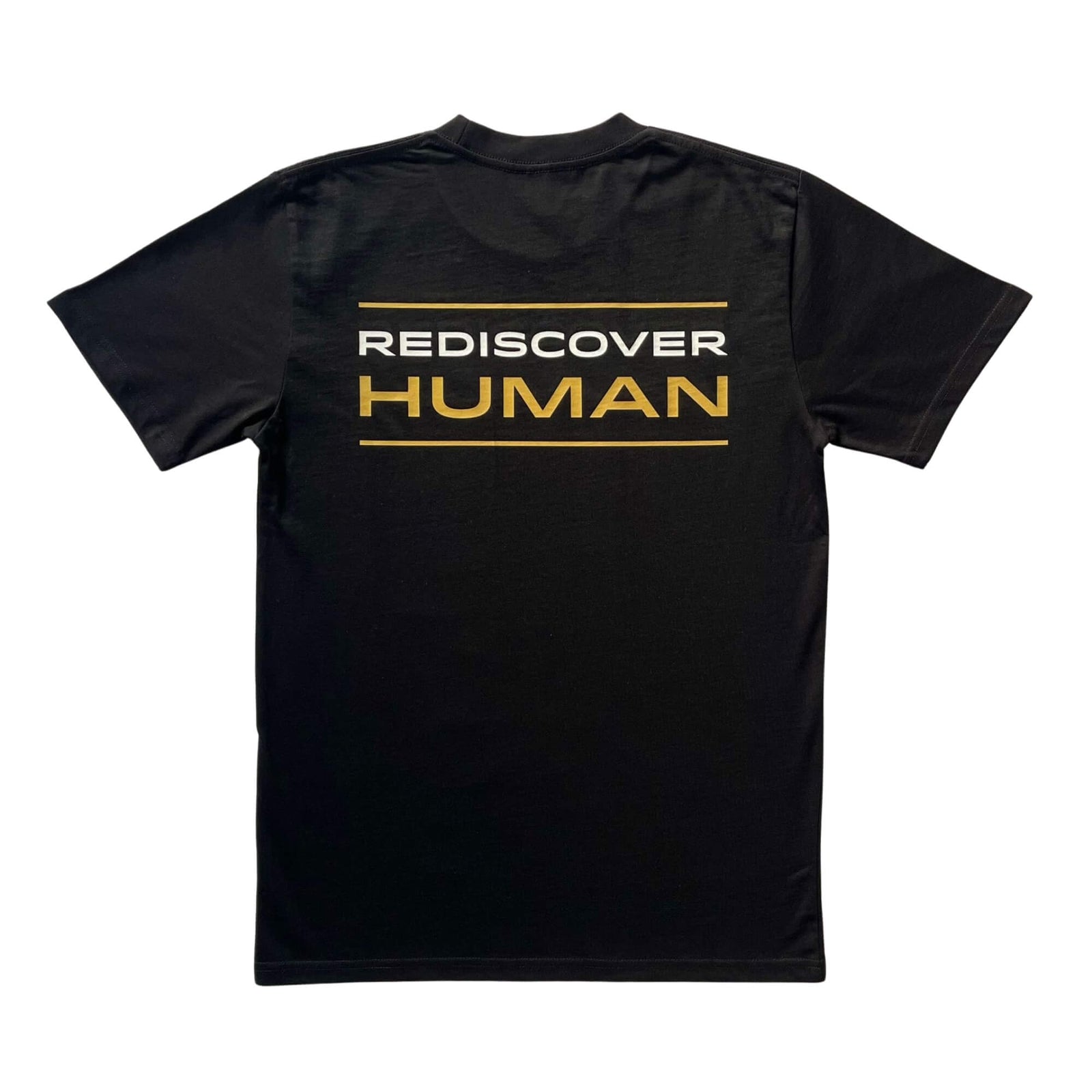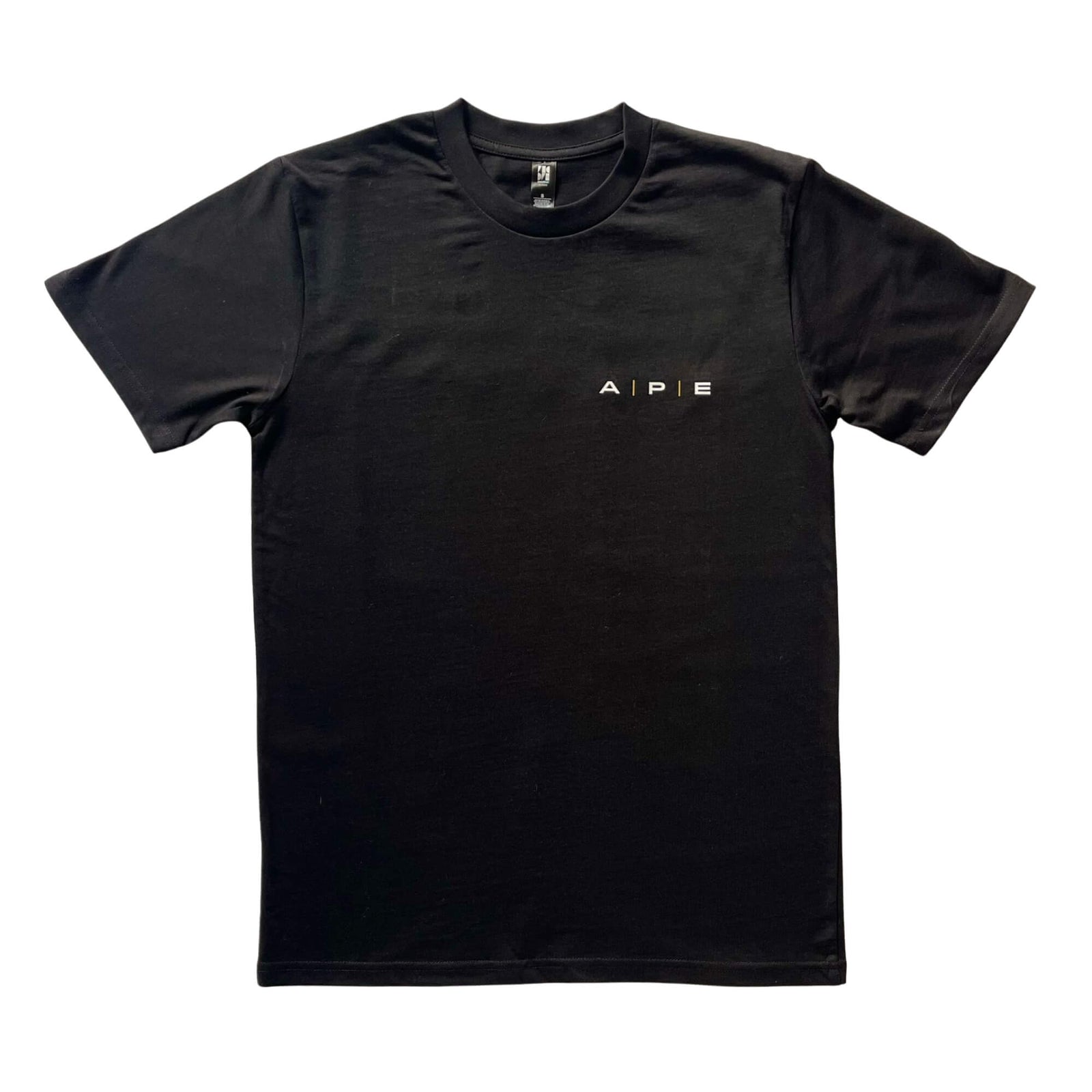 APE Rediscover Human unisex t-shirt. Made from 100% organic cotton that has been ethically sourced, our t-shirt comes in size S, M, L, XL and XXL. The front has the APE logo on the chest pocket and the back has the Rediscover Human logo across the shoulders.